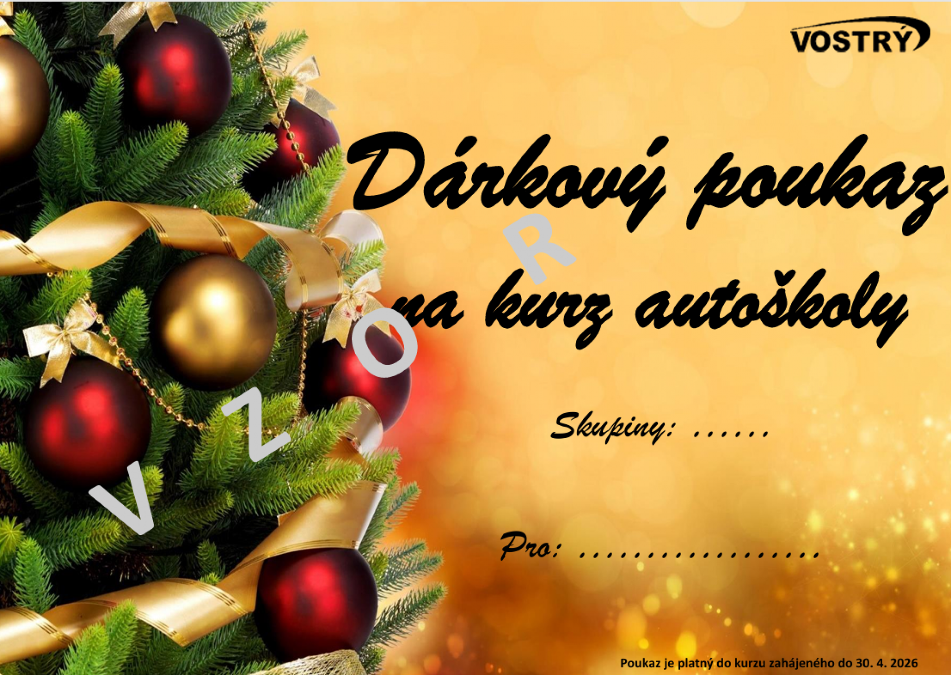 Dárkový poukaz je platný pro kurzy autoškoly do 30.4.2026.